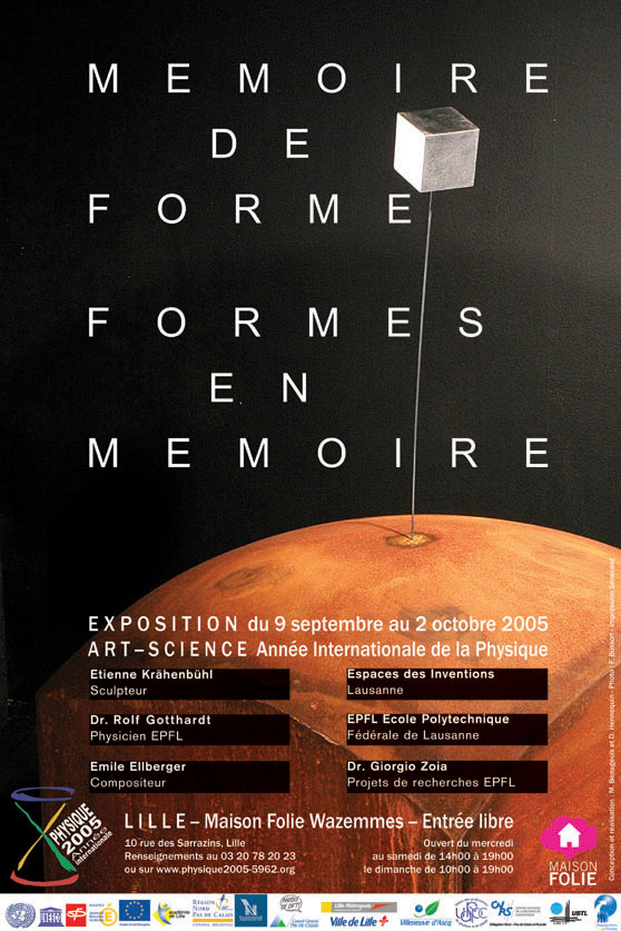 Point d'orgue de cette exposition: les oeuvres du sculpteur suisse Étienne Krahenbühl. Expressionniste de la matière, Étienne Krahenbühl travaille depuis 1968 les métaux: fer, acier, inox, bronze... En 1996, c'est la rencontre avec le physicien Rolf Gotthardt qui lui fait découvrir les alliages à mémoire de forme. Il exploite depuis les propriétés étranges de ces matériaux dits intelligents...